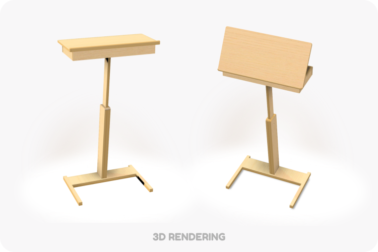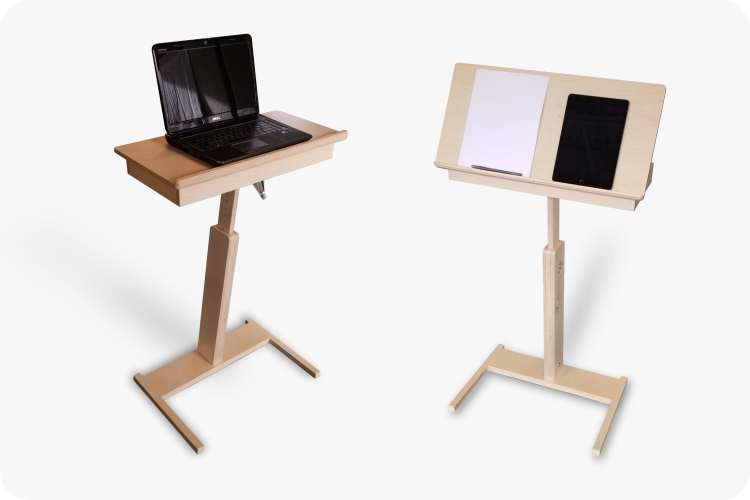 September 2020Designed in Fusion 360 and manufactured at HatchSpace using a state of the art CNC mahine. The Standing Laptop desk is made of high quality Baltic Birch plywood.