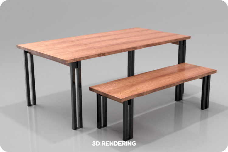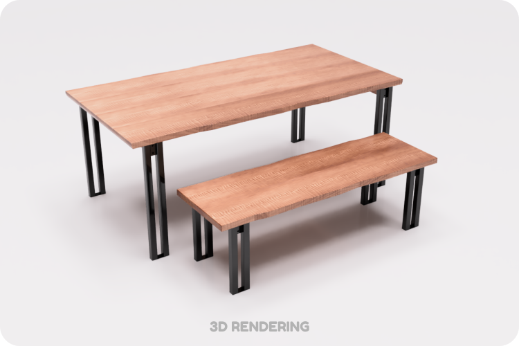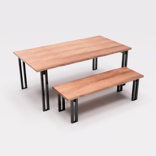 November 2020Locally sourced Cherry wood and manufactured steel dining table and bench set. Hand carved profiles.